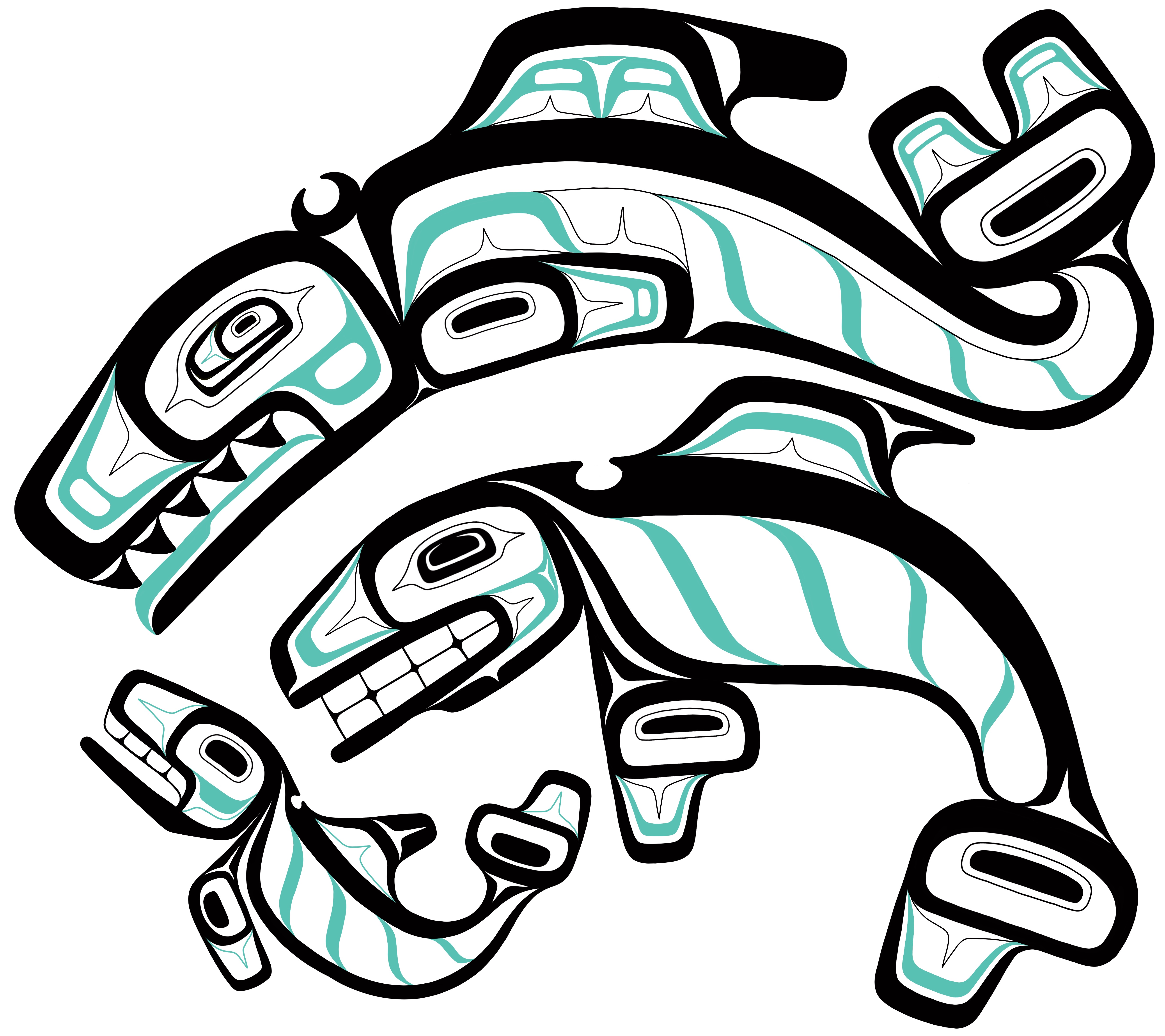 The print, depicting a pod of killer whales, accented with the glacier colour that is be associated with CMTN, is representative of family, intelligence and resilience.