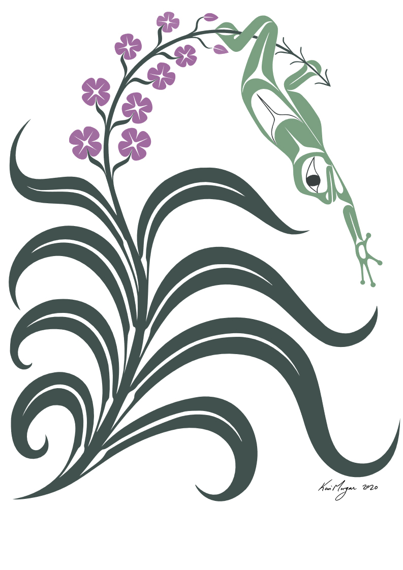 Kari Morgan K’alaajex’s submission of a fireweed and frog design called Resilience was selected because of its representation of transformation, resiliency and achievement.