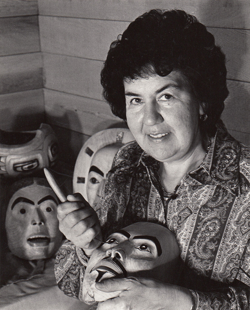 Freda Diesing was a Haida artist from Prince Rupert, BC. She was given the Haida name Skil Kew Wat, ‘On Property Woman's Trail’, a name that reflects the influence and power of her talent.